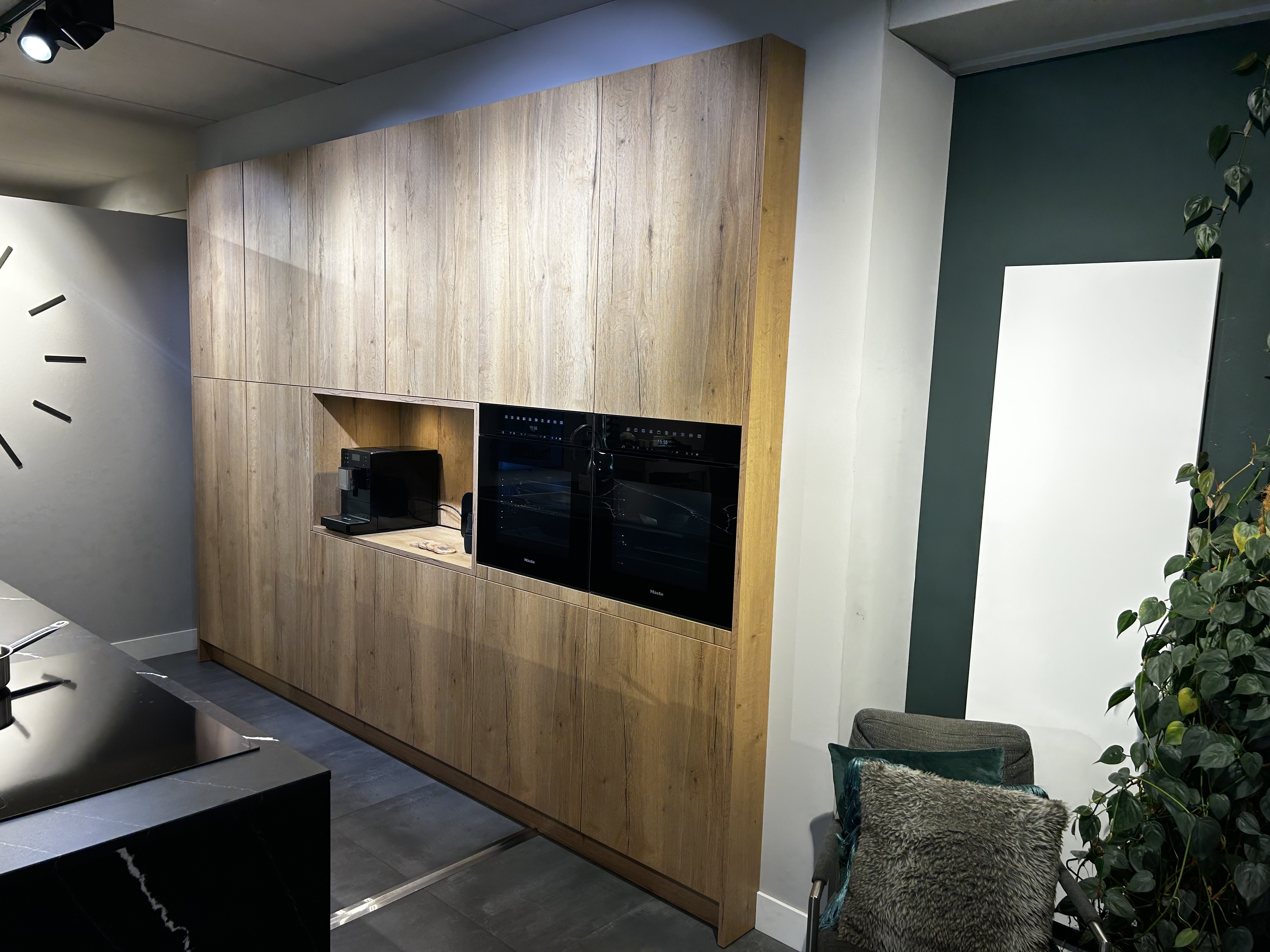 De keuken is voorzien van hoogwaardige Miele-apparatuur: een vaatwasser, koelkast, combistoomoven en combioven. Daarnaast beschikt deze keuken over een Novy Panorama inductiekookplaat met afzuiging en een stijlvolle Novy Pendant hanglamp boven het eiland. De Quooker kokendwaterkraan maakt het geheel compleet en biedt ultiem gebruiksgemak.