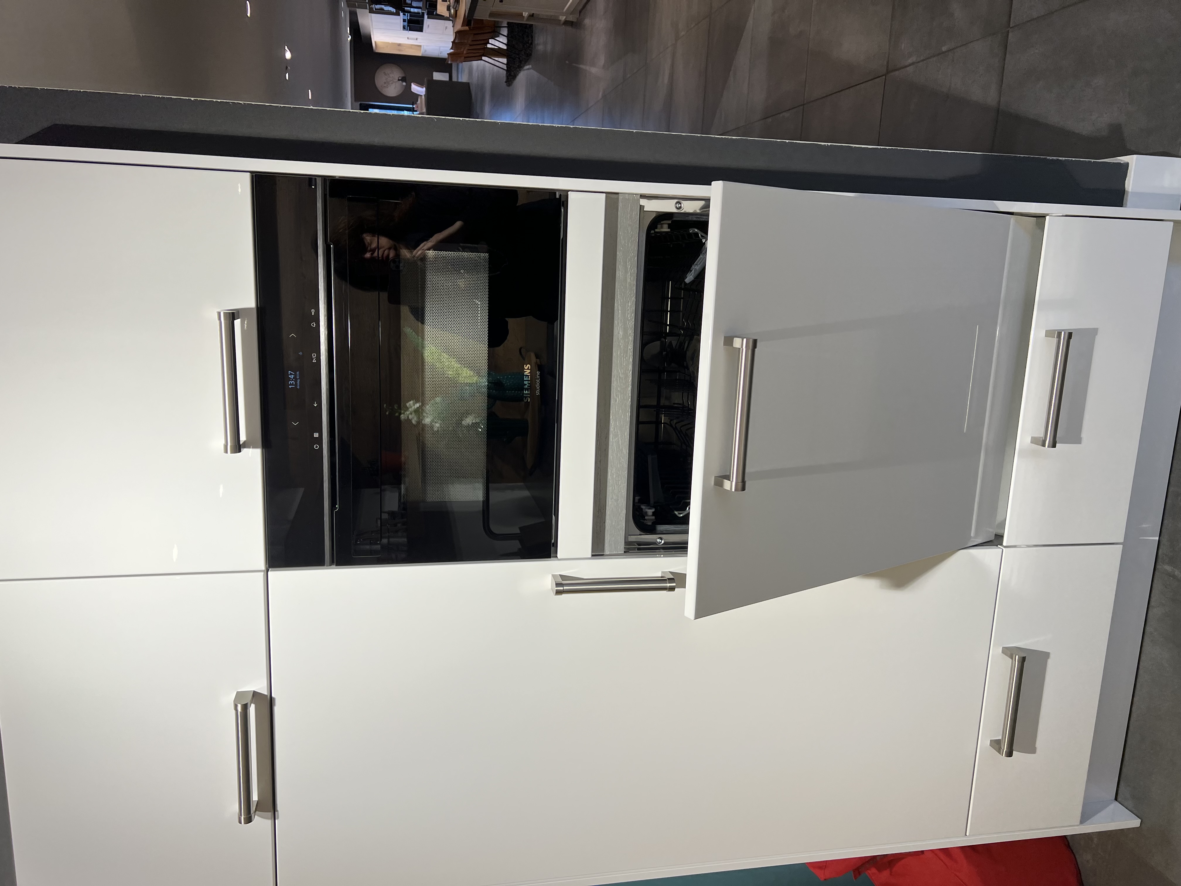 In deze showroomkeuken is ergonomie perfect gecombineerd met esthetiek. Doordat in deze keuken alle inbouwapparaten op hoogte zijn gebracht, kunnen deze allemaal gebruikt worden zonder dat je hoeft te bukken. De keuken is uitgerust in een hoogglans doorgelakt front in de kleur wit en is voorzien van...