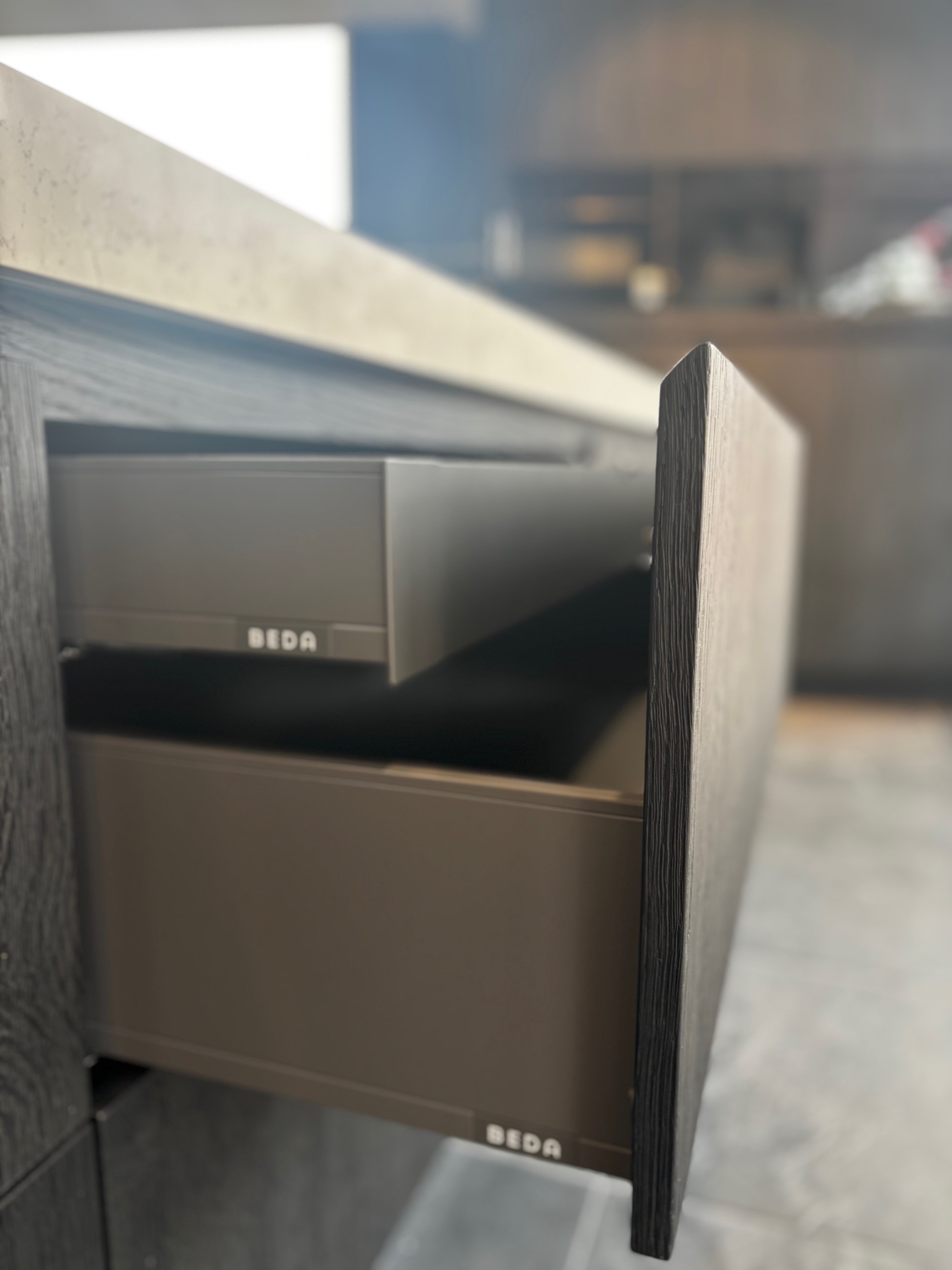 Fronten: Eiken fineer rustiek genoest, kleur Stone Grafiet gestraald